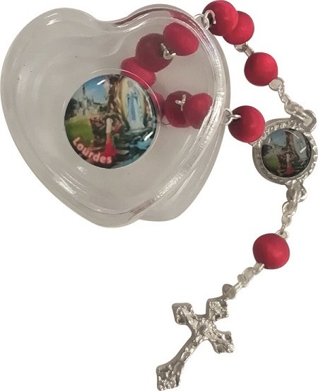 Decina profumata in cofanetto a forma di cuore con immagine Madonna di Lourdes