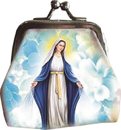 Borsellino in stoffa con immagine Madonna Immacolata con rosario vetro (colori rosario assortiti)
