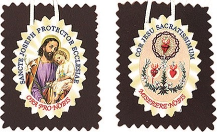 Scapolare in stoffa "San Giuseppe" con busta e biglietto - cm. 3x2,5 con laccio cm. 49