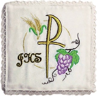 Servizio da messa in lino composto da corporale (48x48), palla (16x16), manutergi (23x48) e purificatoio (23x48)