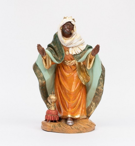 Re Moro a piedi in resina tipo legno dipinto a mano presepio cm 45 Fontanini.
