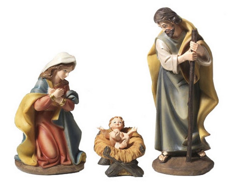Natività 5 pezzi cm. 56 (Madonna, S. Giuseppe, Bimbo e culla, asino e bue) in resina