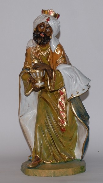Re Magio moro in plastica dipinta a mano colori tipo legno cm. 45