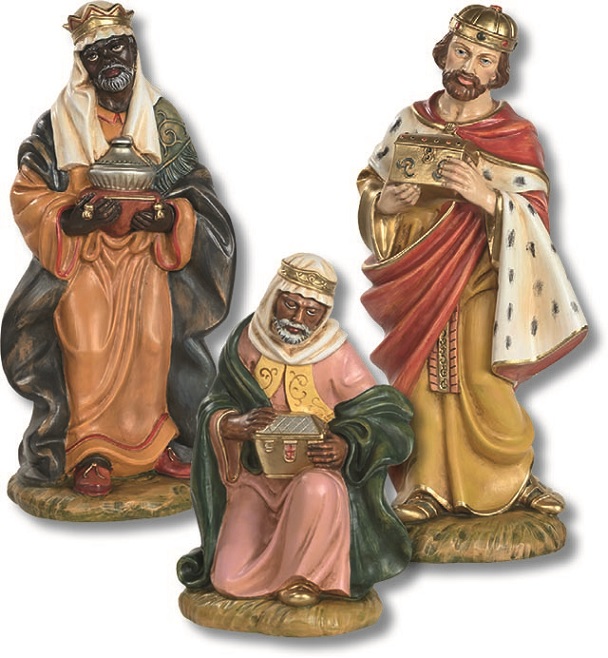 Re Magi per presepio cm. 53 in materiale sintetico tipo legno dipinto a mano (prezzo cadauno)