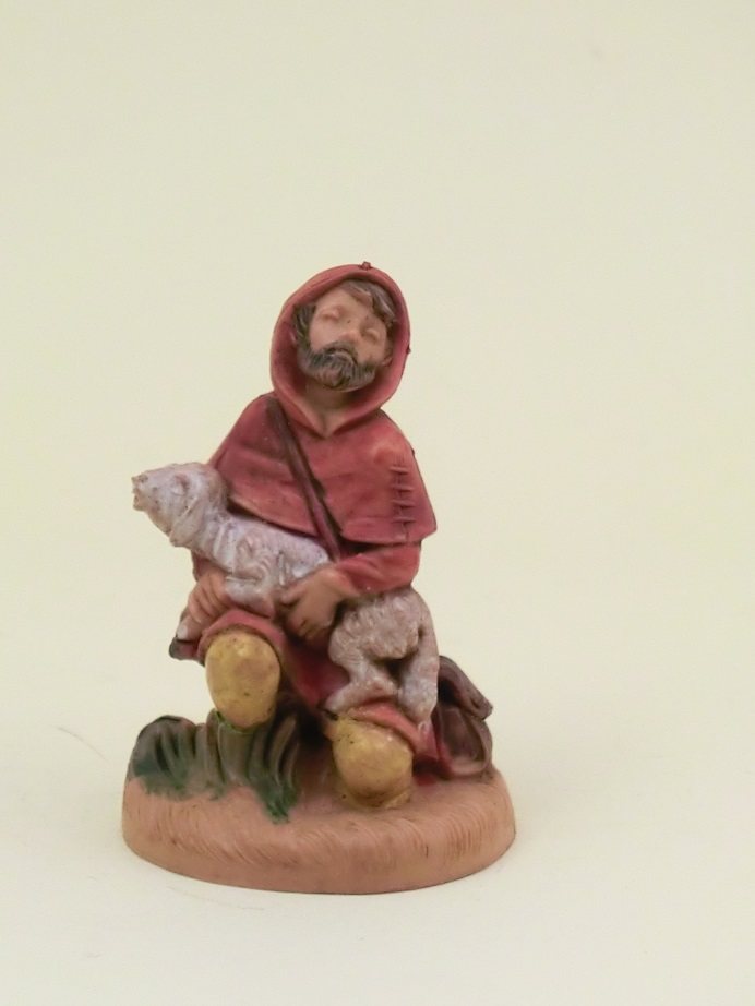 Pastore in ginocchio con agnello, presepe Fontanini cm. 6,5 in resina tipo legno