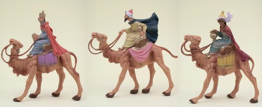 Serie 3 Re Magi a cammello presepe Fontanini cm. 6,5 in resina tipo legno