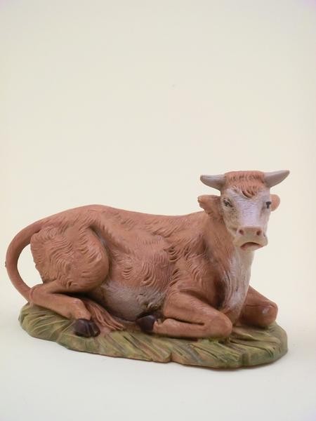 Bue seduto in resina tipo legno dipinto a mano presepio cm 12 Fontanini.