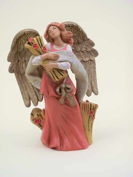 Angelo con grano in resina tipo legno dipinto a mano presepio cm 12 Fontanini.