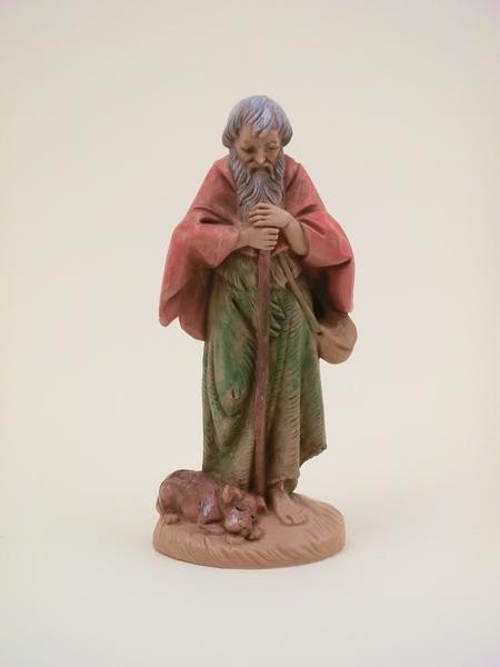 Pastore con bastone in resina tipo legno dipinto a mano presepio cm 12 Fontanini.