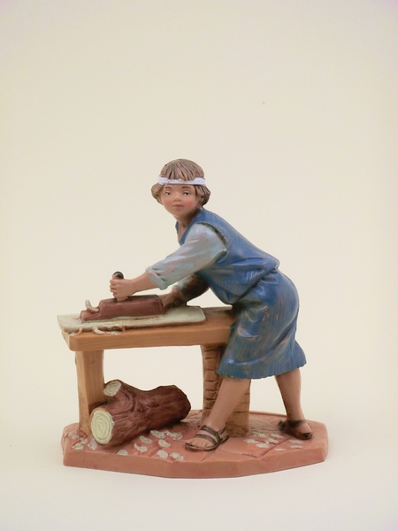 Falegname in resina tipo legno dipinto a mano presepio cm 12 Fontanini.