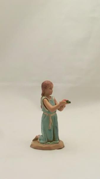 Ragazza in ginocchio in resina tipo legno dipinto a mano presepio cm 12 Fontanini.