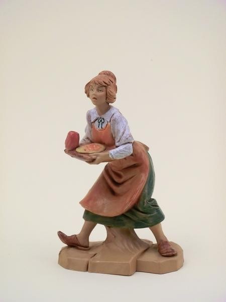 Cameriera con vassoio resina tipo legno dipinto a mano presepio cm 12 Fontanini.