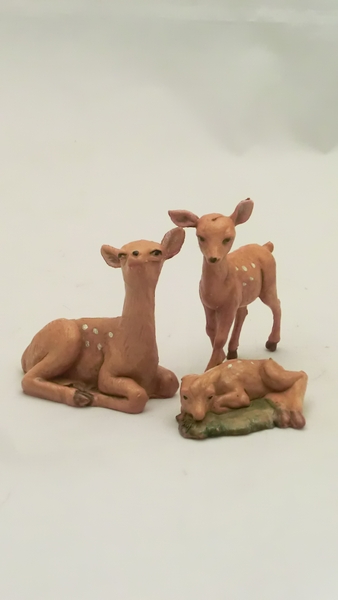 Famiglia daini in resina tipo legno dipinto a mano presepio cm 12 Fontanini.