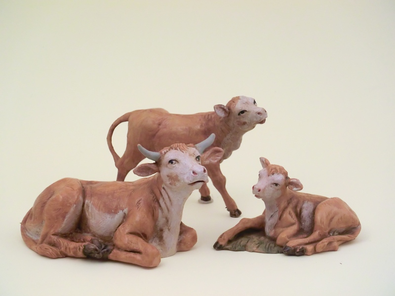 Famiglia bovini in resina tipo legno dipinto a mano presepio cm 12 Fontanini.