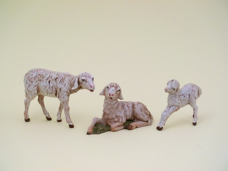 Famiglia tre pecore in resina tipo legno dipinto a mano presepio cm 12 Fontanini.