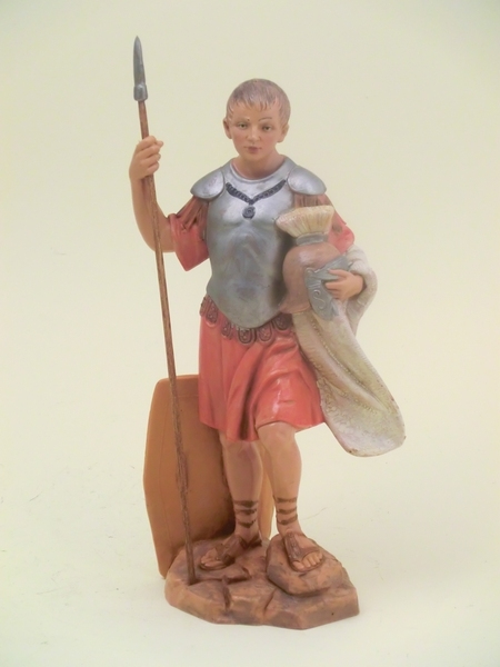 Soldato romano con scudo e lancia in resina tipo legno dipinto a mano presepio cm 19 Fontanini.