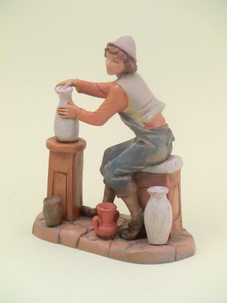 Vasaio in resina tipo legno dipinto a mano presepio cm 19 Fontanini.