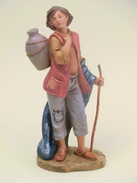 Ragazzo con anfora e bastone in resina tipo legno dipinto a mano presepio cm 19 Fontanini.
