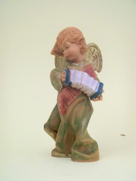 Angioletto con fisarmonica in resina tipo legno dipinto a mano per presepio cm 19 Fontanini.