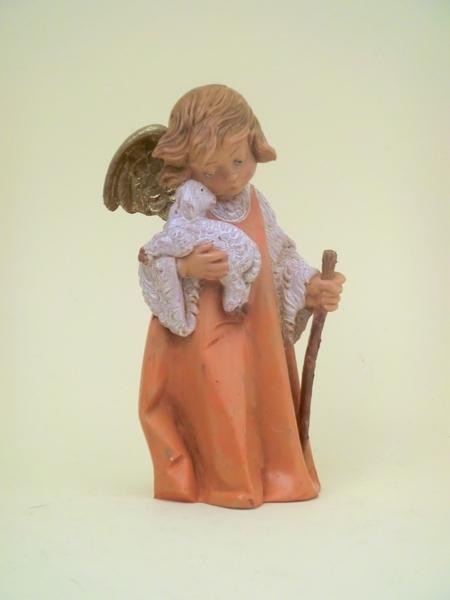 Angioletto con agnello in resina tipo legno dipinto a mano per presepio cm 19 Fontanini.