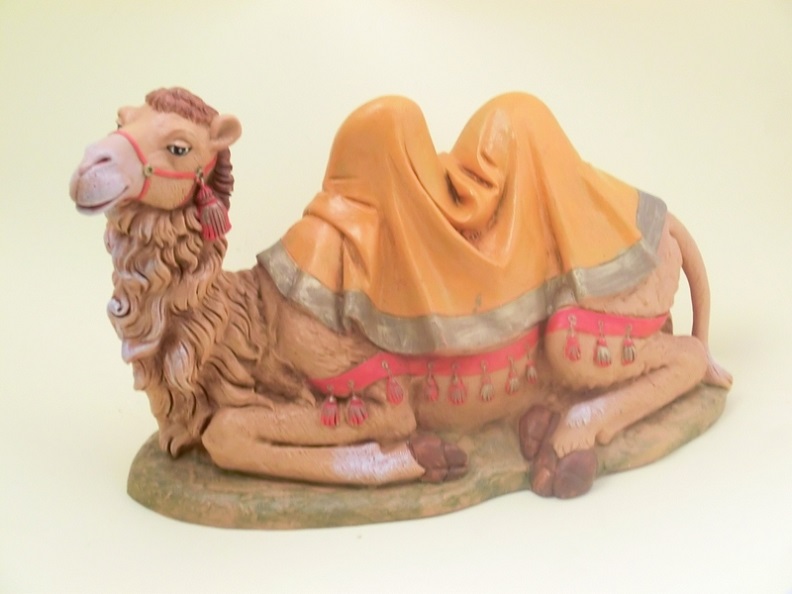 Cammello seduto in resina tipo legno dipinto a mano adatto per presepio cm 30 Fontanini.