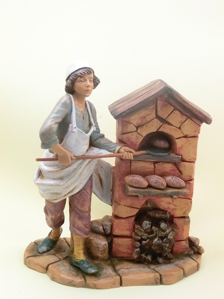 Fornaio con forno in resina tipo legno dipinto a mano adatto per presepio cm 30 Fontanini.