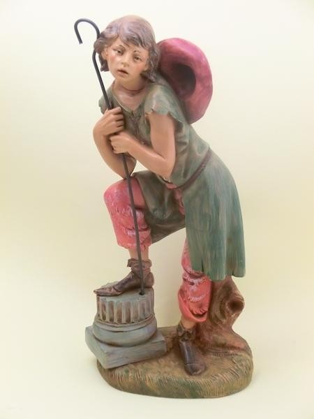 Ragazza con cappello e bastone in resina tipo legno dipinto a mano adatta per presepio cm 30 Fontanini.