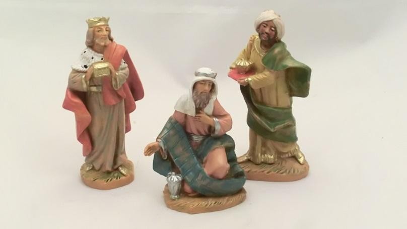Serie di 3 Re Magi a piedi in resina tipo legno dipinto a mano per presepio cm 9,5 Fontanini.
