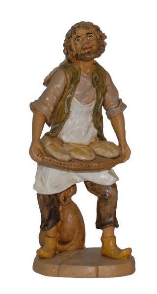 Pastore con cesti di pane cm. 20 in resina tipo legno dipinta a mano