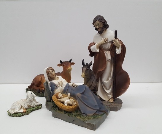 Natività 5 pezzi in resina cm. 19 (altezza di S. Giuseppe) con Madonna sdraiata