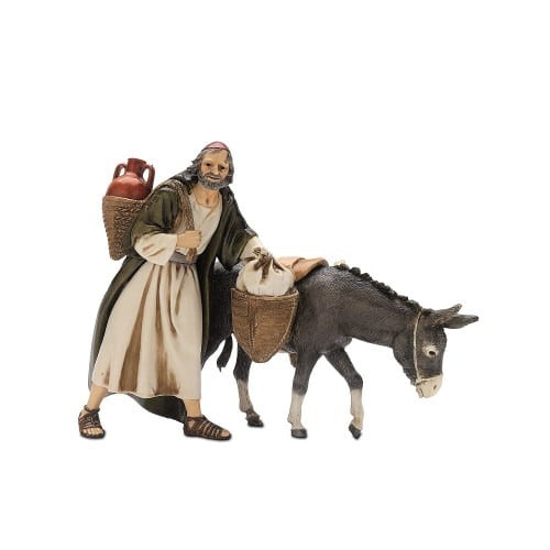 Viandante con asino - presepe Moranduzzo cm. 13 in pvc dipinto a mano