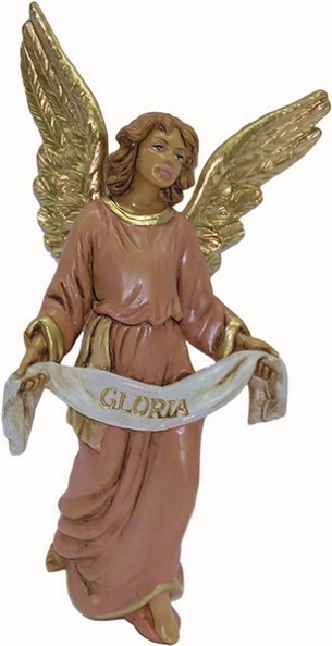 Statua Angelo Gloria per presepio cm. 30 in resina tipo legno dipinta a mano