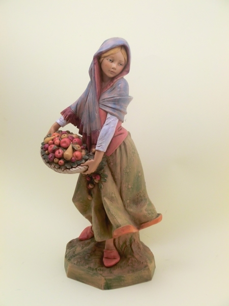 Donna con cesto di frutta in resina tipo legno dipinto a mano adatta per presepio cm 30 Fontanini.