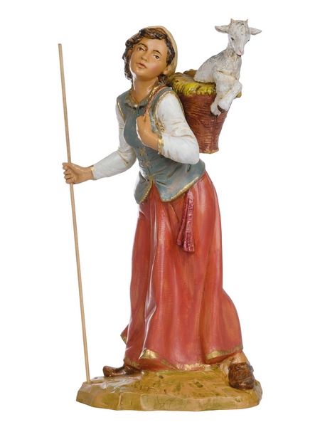 Donna con gerla e capretta ( novità 2020) in resina PVC tipo legno dipinto a mano adatto per presepio cm 30 Fontanini.