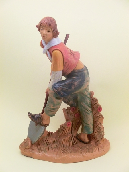 Pastore con vanga in resina tipo legno dipinto a mano adatto per presepio cm 30 Fontanini.