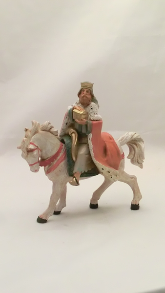 Re Magio su cavallo in resina tipo legno dipinto a mano presepio adatto al cm 12 Fontanini.