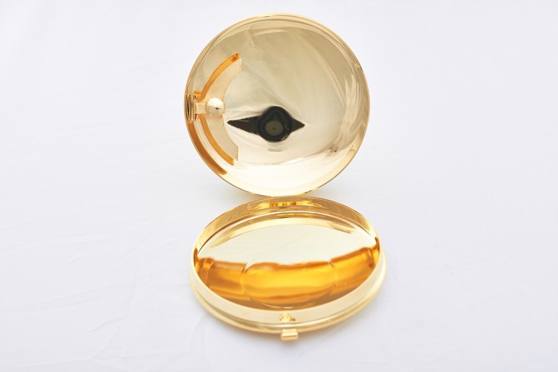 Scatola porta ostie con lunetta in ottone dorato diam. cm. 9