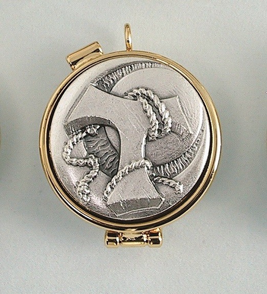 Teca metallo dorato placca peltro Croce tau - diam. cm.5,4