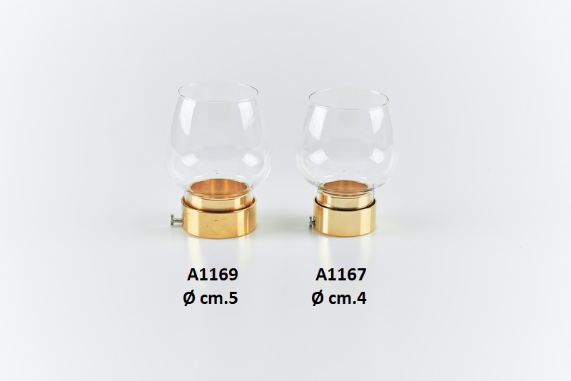 Antivento in vetro per torce Ø cm. 5 con ghiera a vite oro