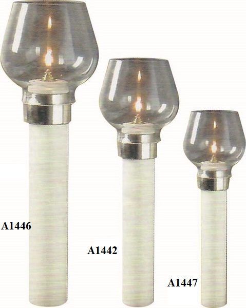 Torcia a cera liquida con antivento anello nikel di Ø cm. 5 - altezza cm. 30