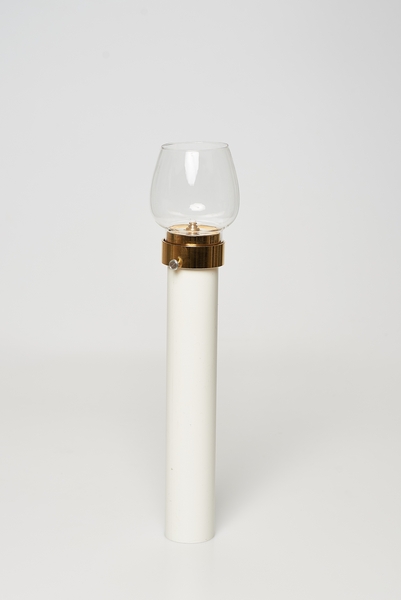 Torcia a cera liquida con antivento anello dorato di diametro cm. 4 altezza cm. 30.