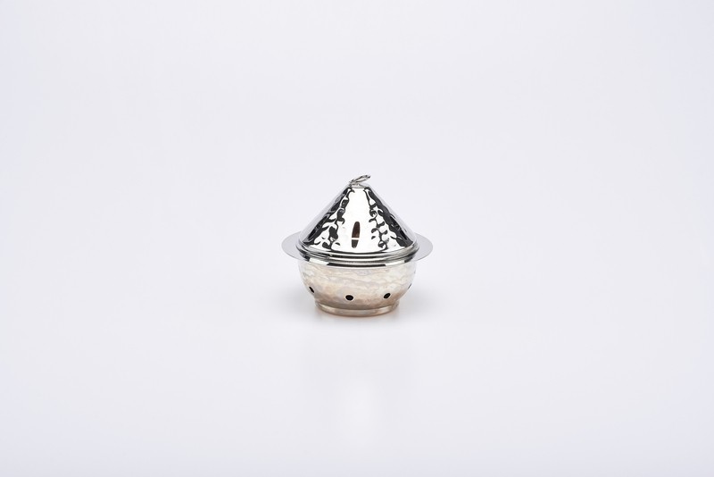 Bruciaincenso a lumino in metallo nikelato, diametro cm. 11