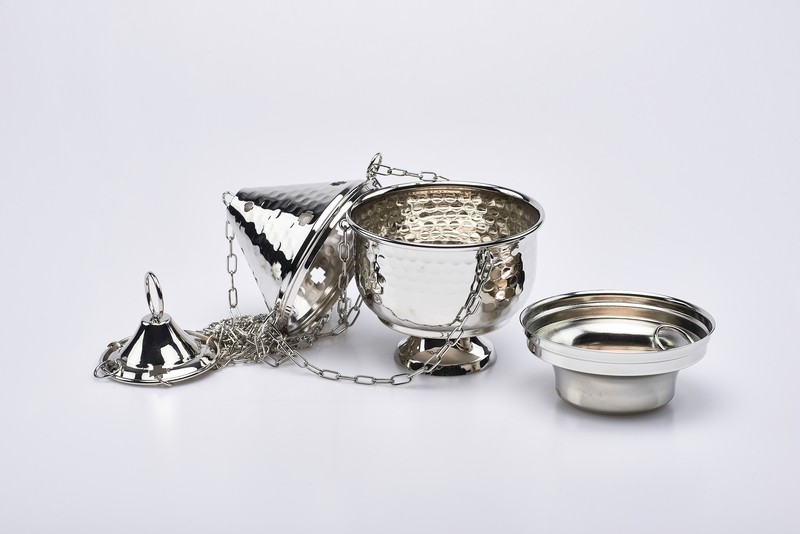 Turibolo nikelato altezza cm. 15,5x Ø11,5, con base Ø cm.6