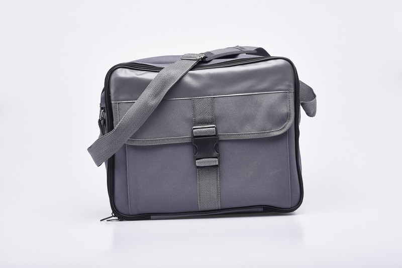 Borsellone per celebrazioni in rafia grigia - misura 26x32x12 cm. - Completo assortimento metalli per celebrazione e viatici. Capaci tasche per paramenti ed altro, trasporto comodissimo