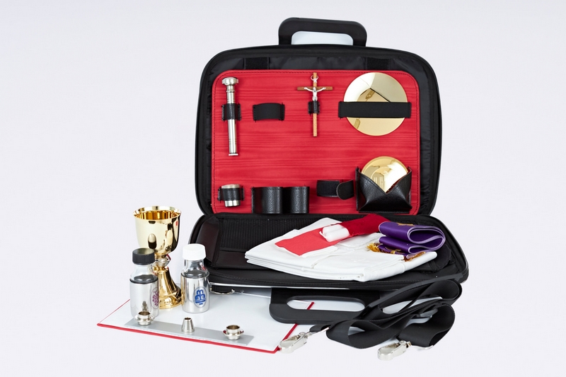 Borsa laptop rigida, con manici e tracolla in dotazione, completa di oggetti per la liturgia.Disponibile nei colori interno rosso e giallo.