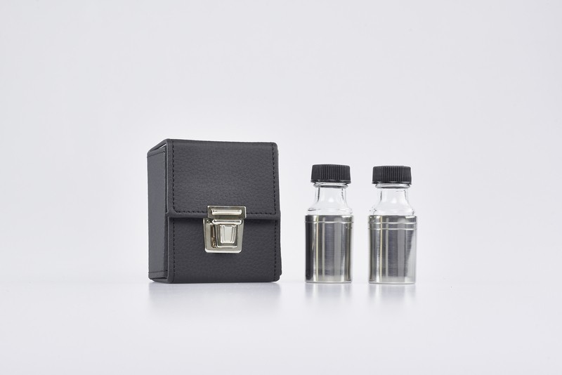 Astuccio con due bottiglie con corazza solo per oli santi - 30cc. ( astuccio cm.10x8x4,5 )