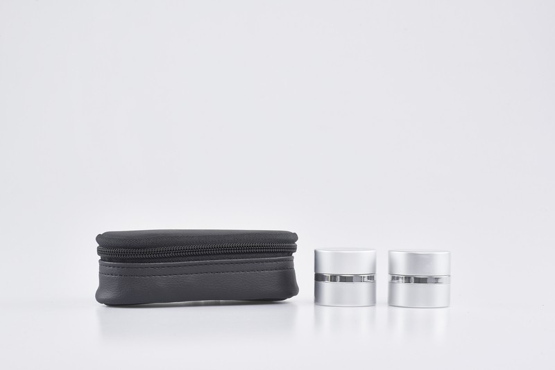 Astuccio chiusura a cerniera con interno in velluto contenente due vasetti oli santi in alluminio con chiusura ermetica, decorazioni disponibili: CHR - CAT - INF- cm.15 x 7 x 5.