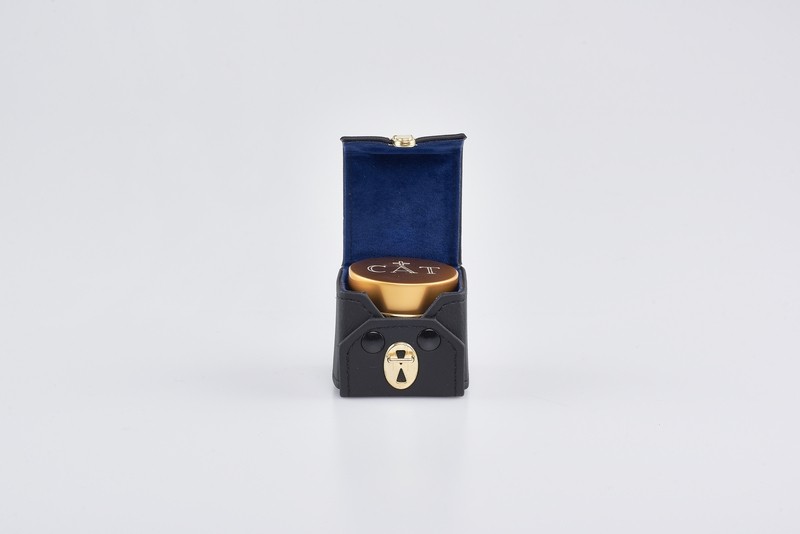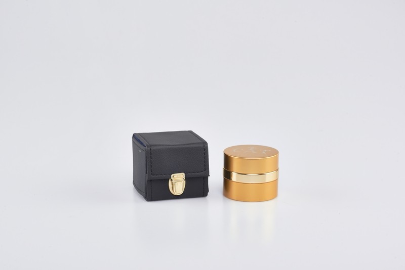 Astuccio con 1 vasetto oli santi tondo in alluminio con chiusura ermetica con interno in vetro ceramica , capienza 30 cc., decorazioni disponibili: CHR - CAT - INF- cm. 5 X 4,3