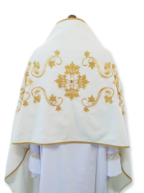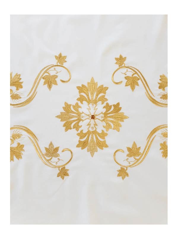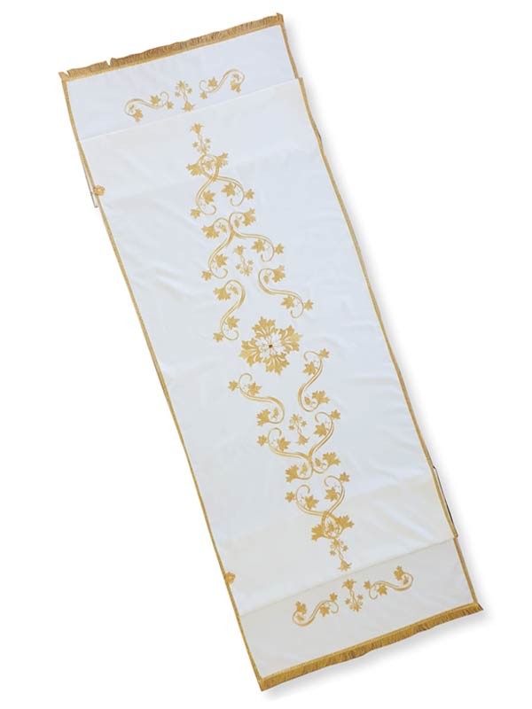 Velo Omerale in pura lana 100%, riccamente ricamato a mano con filo dorato, perline e pietre (gancio compreso). Misure cm. 65x250. Disponibile in avorio, viola, rosso e verde.